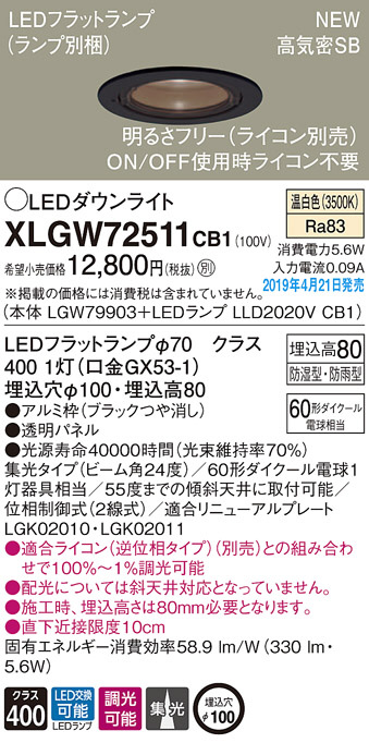 Panasonic LED ¥¨¥¯¥¹¥Æ¥ê¥¢¡¦¥¢¥¦¥È¥É¥¢ XLGW72511CB1