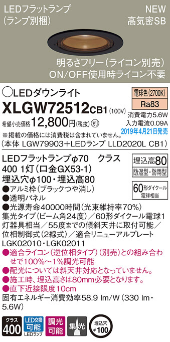 Panasonic LED ¥¨¥¯¥¹¥Æ¥ê¥¢¡¦¥¢¥¦¥È¥É¥¢ XLGW72512CB1