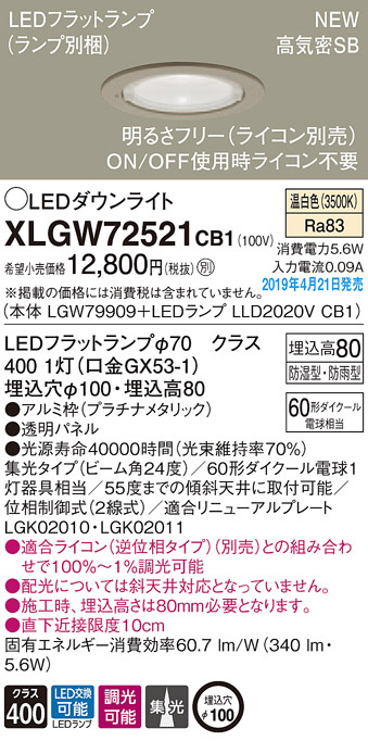 Panasonic LED ¥¨¥¯¥¹¥Æ¥ê¥¢¡¦¥¢¥¦¥È¥É¥¢ XLGW72521CB1