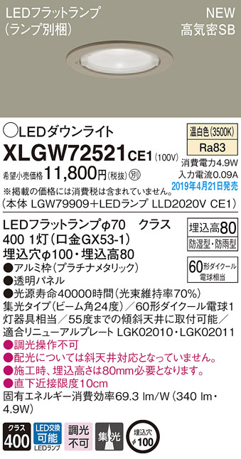 Panasonic LED ¥¨¥¯¥¹¥Æ¥ê¥¢¡¦¥¢¥¦¥È¥É¥¢ XLGW72521CE1