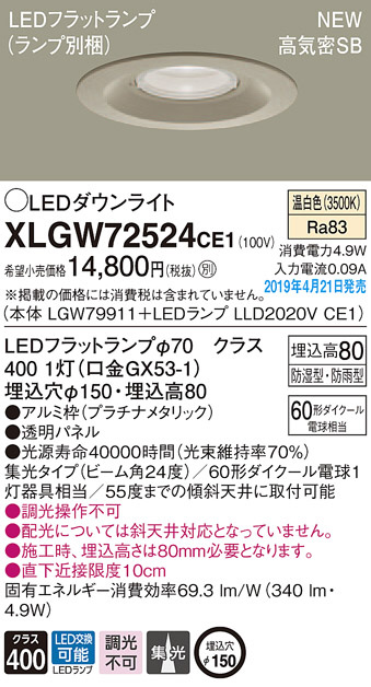 Panasonic LED ¥¨¥¯¥¹¥Æ¥ê¥¢¡¦¥¢¥¦¥È¥É¥¢ XLGW72524CE1