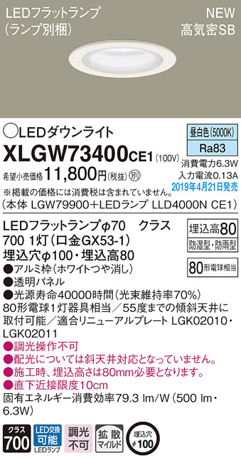 Panasonic LED ¥¨¥¯¥¹¥Æ¥ê¥¢¡¦¥¢¥¦¥È¥É¥¢ XLGW73400CE1