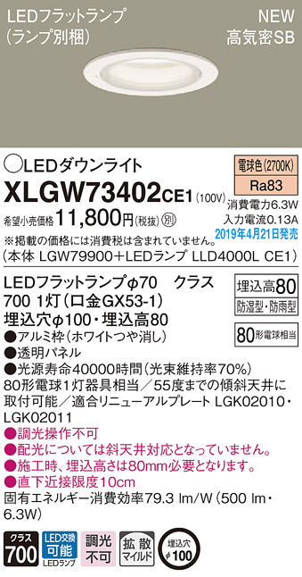 Panasonic LED ¥¨¥¯¥¹¥Æ¥ê¥¢¡¦¥¢¥¦¥È¥É¥¢ XLGW73402CE1