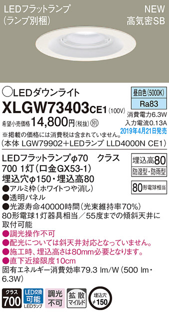 Panasonic LED ¥¨¥¯¥¹¥Æ¥ê¥¢¡¦¥¢¥¦¥È¥É¥¢ XLGW73403CE1