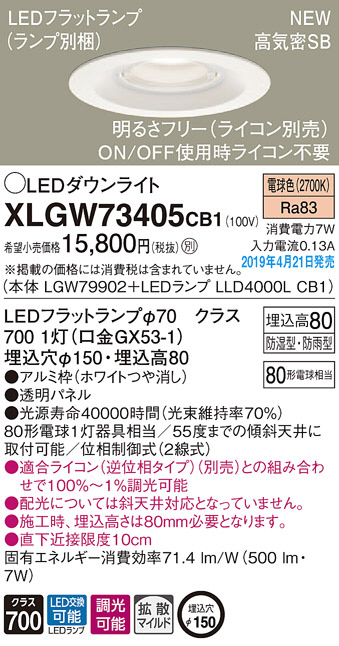 Panasonic LED ¥¨¥¯¥¹¥Æ¥ê¥¢¡¦¥¢¥¦¥È¥É¥¢ XLGW73405CB1