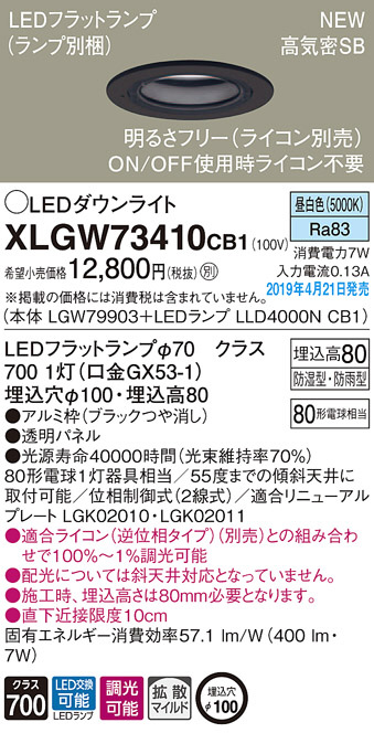 Panasonic LED ¥¨¥¯¥¹¥Æ¥ê¥¢¡¦¥¢¥¦¥È¥É¥¢ XLGW73410CB1