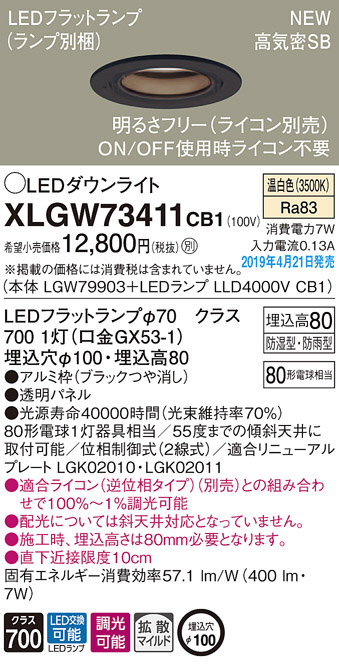 Panasonic LED ¥¨¥¯¥¹¥Æ¥ê¥¢¡¦¥¢¥¦¥È¥É¥¢ XLGW73411CB1