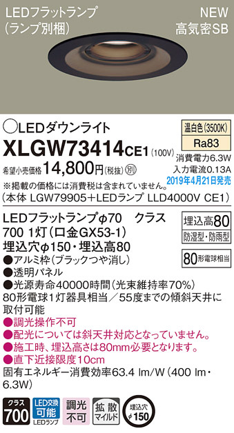 Panasonic LED ¥¨¥¯¥¹¥Æ¥ê¥¢¡¦¥¢¥¦¥È¥É¥¢ XLGW73414CE1