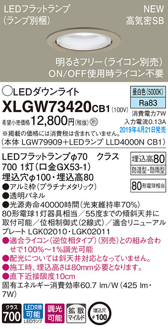 Panasonic LED ¥¨¥¯¥¹¥Æ¥ê¥¢¡¦¥¢¥¦¥È¥É¥¢ XLGW73420CB1