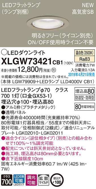 Panasonic LED ¥¨¥¯¥¹¥Æ¥ê¥¢¡¦¥¢¥¦¥È¥É¥¢ XLGW73421CB1