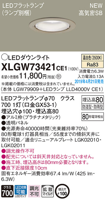 Panasonic LED ¥¨¥¯¥¹¥Æ¥ê¥¢¡¦¥¢¥¦¥È¥É¥¢ XLGW73421CE1