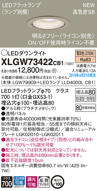 Panasonic LED ¥¨¥¯¥¹¥Æ¥ê¥¢¡¦¥¢¥¦¥È¥É¥¢ XLGW73422CB1
