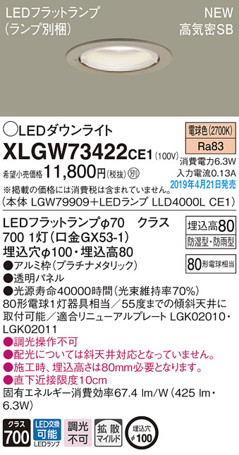 Panasonic LED ¥¨¥¯¥¹¥Æ¥ê¥¢¡¦¥¢¥¦¥È¥É¥¢ XLGW73422CE1