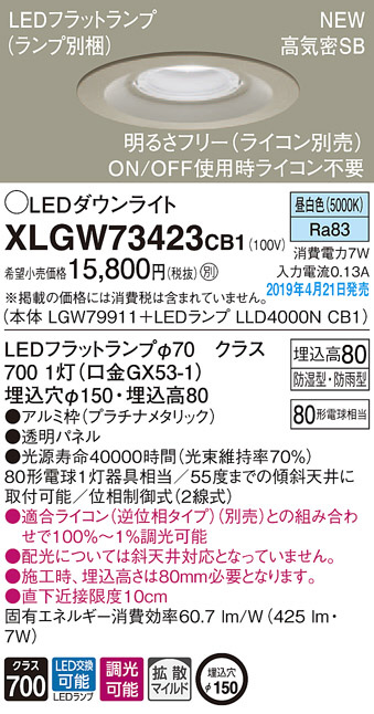 Panasonic LED ¥¨¥¯¥¹¥Æ¥ê¥¢¡¦¥¢¥¦¥È¥É¥¢ XLGW73423CB1
