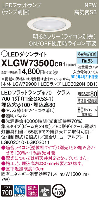 Panasonic LED ¥¨¥¯¥¹¥Æ¥ê¥¢¡¦¥¢¥¦¥È¥É¥¢ XLGW73500CB1