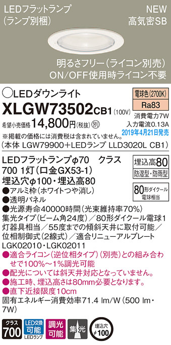 Panasonic LED ¥¨¥¯¥¹¥Æ¥ê¥¢¡¦¥¢¥¦¥È¥É¥¢ XLGW73502CB1