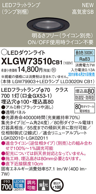 Panasonic LED ¥¨¥¯¥¹¥Æ¥ê¥¢¡¦¥¢¥¦¥È¥É¥¢ XLGW73510CB1