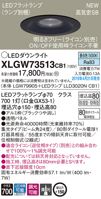 Panasonic LED ¥¨¥¯¥¹¥Æ¥ê¥¢¡¦¥¢¥¦¥È¥É¥¢ XLGW73513CB1