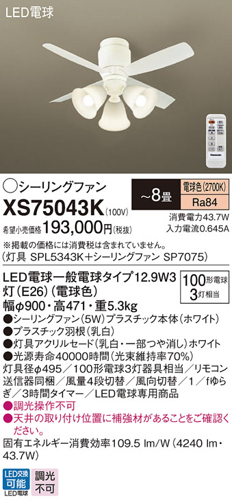 Panasonic ¥·¡¼¥ê¥ó¥°¥Õ¥¡¥ó XS75043K