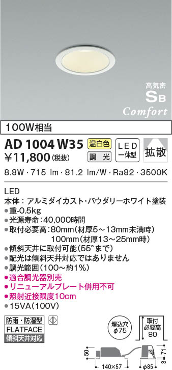 KOIZUMI ¥³¥¤¥º¥ß¾ÈÌÀ ¹âµ¤Ì©SB¥À¥¦¥ó¥é¥¤¥È AD1004W35