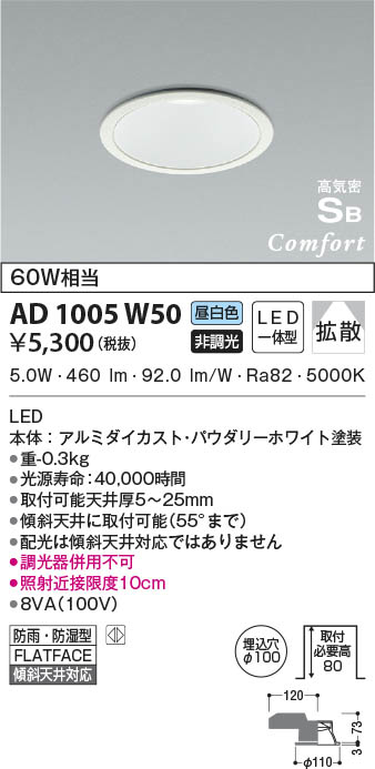 KOIZUMI ¥³¥¤¥º¥ß¾ÈÌÀ ¹âµ¤Ì©SB¥À¥¦¥ó¥é¥¤¥È AD1005W50