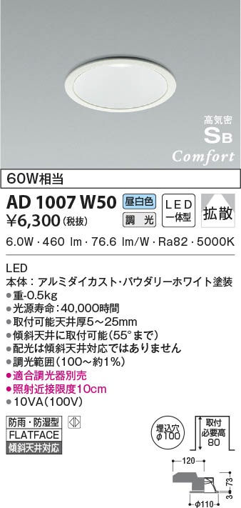 KOIZUMI ¥³¥¤¥º¥ß¾ÈÌÀ ¹âµ¤Ì©SB¥À¥¦¥ó¥é¥¤¥È AD1007W50