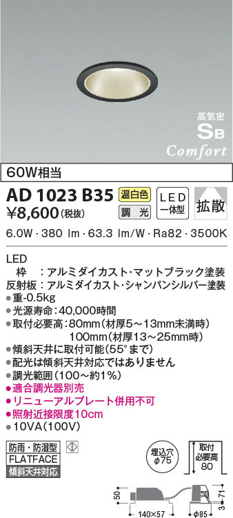 KOIZUMI ¥³¥¤¥º¥ß¾ÈÌÀ ¹âµ¤Ì©SB¥À¥¦¥ó¥é¥¤¥È AD1023B35