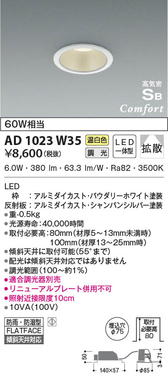KOIZUMI ¥³¥¤¥º¥ß¾ÈÌÀ ¹âµ¤Ì©SB¥À¥¦¥ó¥é¥¤¥È AD1023W35
