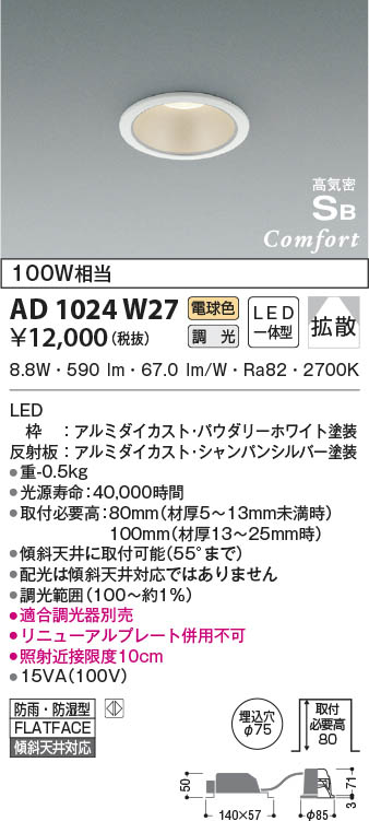 KOIZUMI ¥³¥¤¥º¥ß¾ÈÌÀ ¹âµ¤Ì©SB¥À¥¦¥ó¥é¥¤¥È AD1024W27