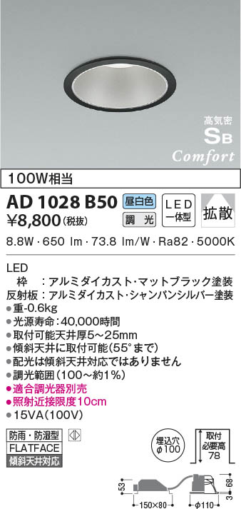 KOIZUMI ¥³¥¤¥º¥ß¾ÈÌÀ ¹âµ¤Ì©SB¥À¥¦¥ó¥é¥¤¥È AD1028B50