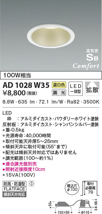 KOIZUMI ¥³¥¤¥º¥ß¾ÈÌÀ ¹âµ¤Ì©SB¥À¥¦¥ó¥é¥¤¥È AD1028W35