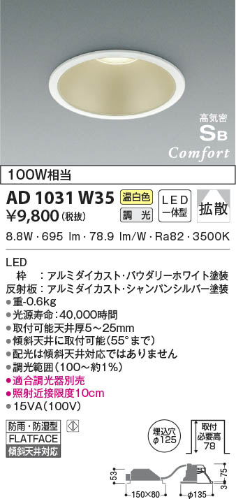 KOIZUMI ¥³¥¤¥º¥ß¾ÈÌÀ ¹âµ¤Ì©SB¥À¥¦¥ó¥é¥¤¥È AD1031W35