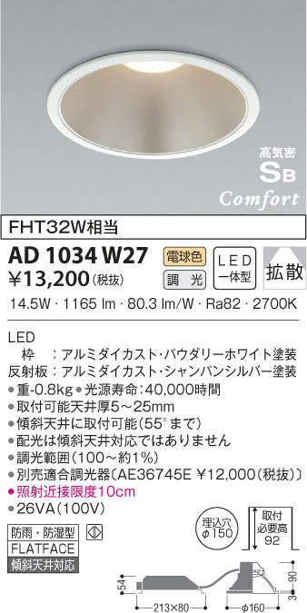 KOIZUMI ¥³¥¤¥º¥ß¾ÈÌÀ ¹âµ¤Ì©¥À¥¦¥ó¥é¥¤¥È AD1034W27