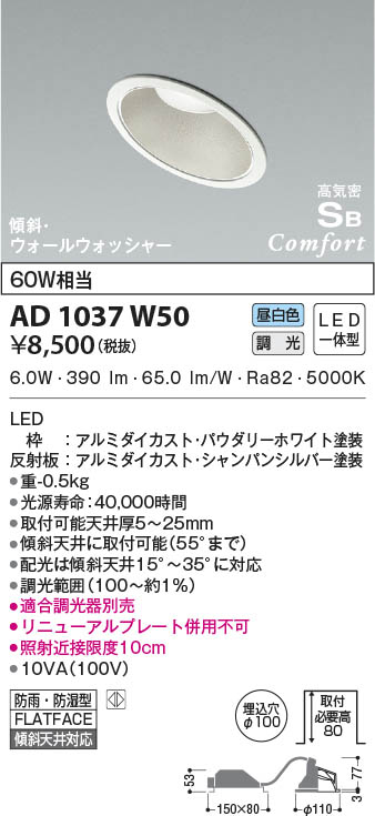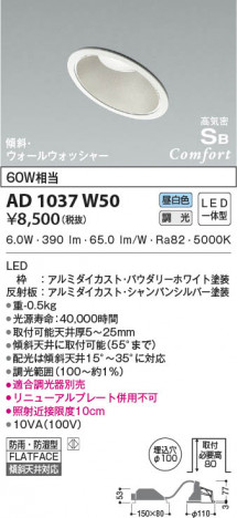 KOIZUMI ¥³¥¤¥º¥ß¾ÈÌÀ ¹âµ¤Ì©SB¥À¥¦¥ó¥é¥¤¥È AD1037W50