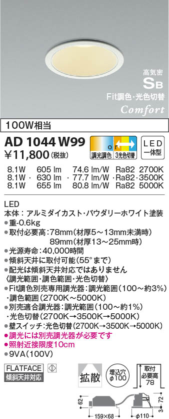 KOIZUMI ¥³¥¤¥º¥ß¾ÈÌÀ ¹âµ¤Ì©SB¥À¥¦¥ó¥é¥¤¥È AD1044W99