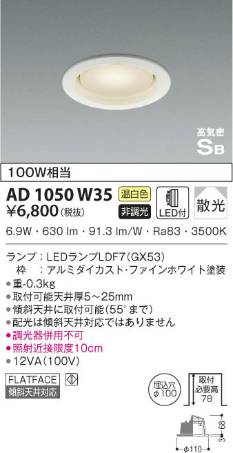 KOIZUMI ¥³¥¤¥º¥ß¾ÈÌÀ ¹âµ¤Ì©¥À¥¦¥ó¥é¥¤¥È AD1050W35