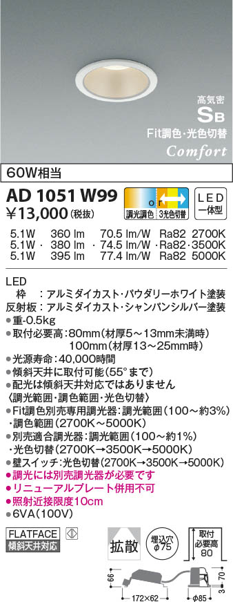 KOIZUMI ¥³¥¤¥º¥ß¾ÈÌÀ ¹âµ¤Ì©SB¥À¥¦¥ó¥é¥¤¥È AD1051W99