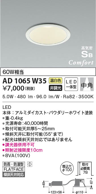 KOIZUMI ¥³¥¤¥º¥ß¾ÈÌÀ ¹âµ¤Ì©SB¥À¥¦¥ó¥é¥¤¥È AD1065W35