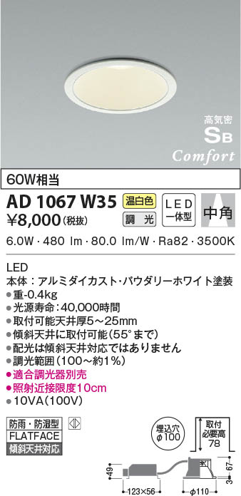 KOIZUMI ¥³¥¤¥º¥ß¾ÈÌÀ ¹âµ¤Ì©SB¥À¥¦¥ó¥é¥¤¥È AD1067W35