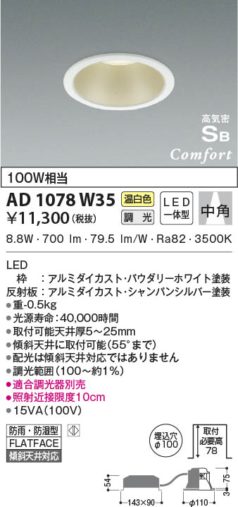 KOIZUMI ¥³¥¤¥º¥ß¾ÈÌÀ ¹âµ¤Ì©SB¥À¥¦¥ó¥é¥¤¥È AD1078W35