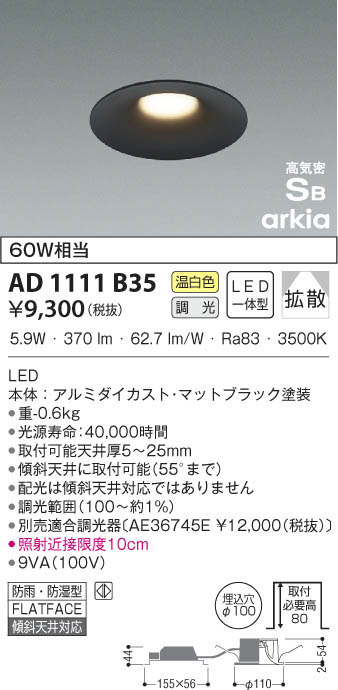 KOIZUMI ¥³¥¤¥º¥ß¾ÈÌÀ ¹âµ¤Ì©¥À¥¦¥ó¥é¥¤¥È AD1111B35