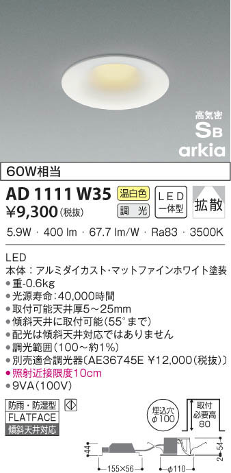 KOIZUMI ¥³¥¤¥º¥ß¾ÈÌÀ ¹âµ¤Ì©¥À¥¦¥ó¥é¥¤¥È AD1111W35