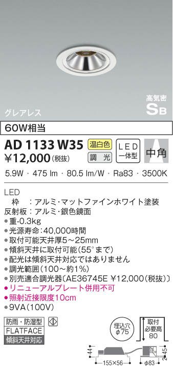 KOIZUMI ¥³¥¤¥º¥ß¾ÈÌÀ ¹âµ¤Ì©¥À¥¦¥ó¥é¥¤¥È AD1133W35