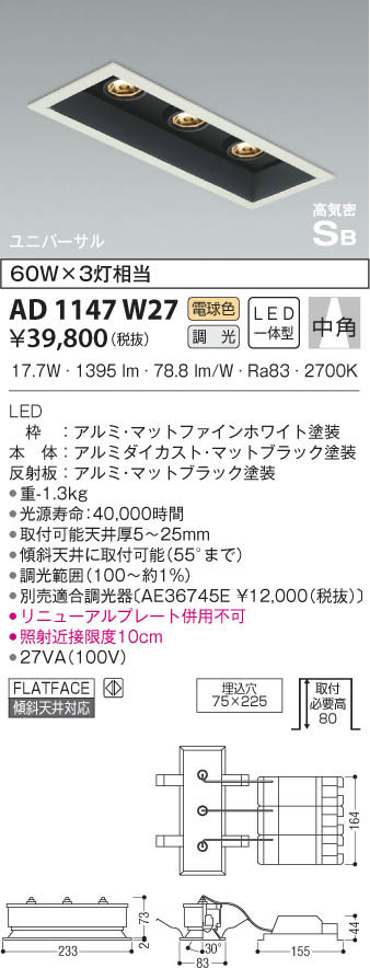 KOIZUMI ¥³¥¤¥º¥ß¾ÈÌÀ ¹âµ¤Ì©¥æ¥Ë¥Ð¡¼¥µ¥ë¥À¥¦¥ó¥é¥¤¥È AD1147W27