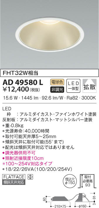 KOIZUMI ¥³¥¤¥º¥ß¾ÈÌÀ £Í·Á¥À¥¦¥ó¥é¥¤¥È AD49580L