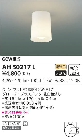 KOIZUMI ¥³¥¤¥º¥ß¾ÈÌÀ ¾®·¿¥·¡¼¥ê¥ó¥° AH50217L