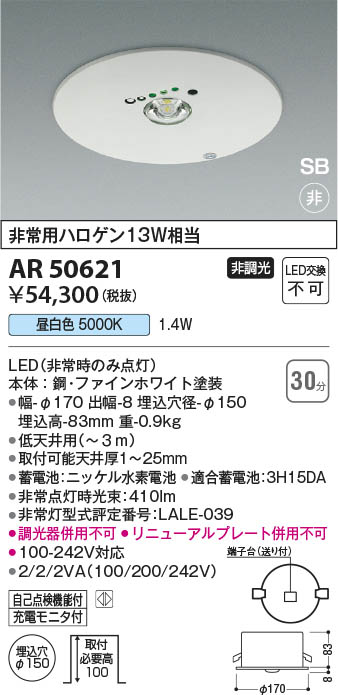 Koizumi ¥³¥¤¥º¥ß¾ÈÌÀ LED £Ó·ÁÈó¾ïÅô AR50621