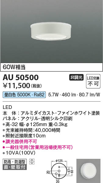 Koizumi ¥³¥¤¥º¥ß¾ÈÌÀ LEDËɱ«Ëɼ¾·¿¥·¡¼¥ê¥ó¥° AU50500