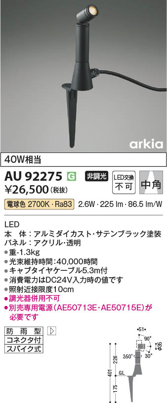 Koizumi ¥³¥¤¥º¥ß¾ÈÌÀ LED DC24V¥¨¥¯¥¹¥Æ¥ê¥¢¥¹¥Ñ¥¤¥¯¥¹¥Ý¥Ã¥È AU92275