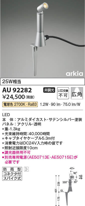 Koizumi ¥³¥¤¥º¥ß¾ÈÌÀ LED DC24V¥¨¥¯¥¹¥Æ¥ê¥¢¥¹¥Ñ¥¤¥¯¥¹¥Ý¥Ã¥È AU92282
